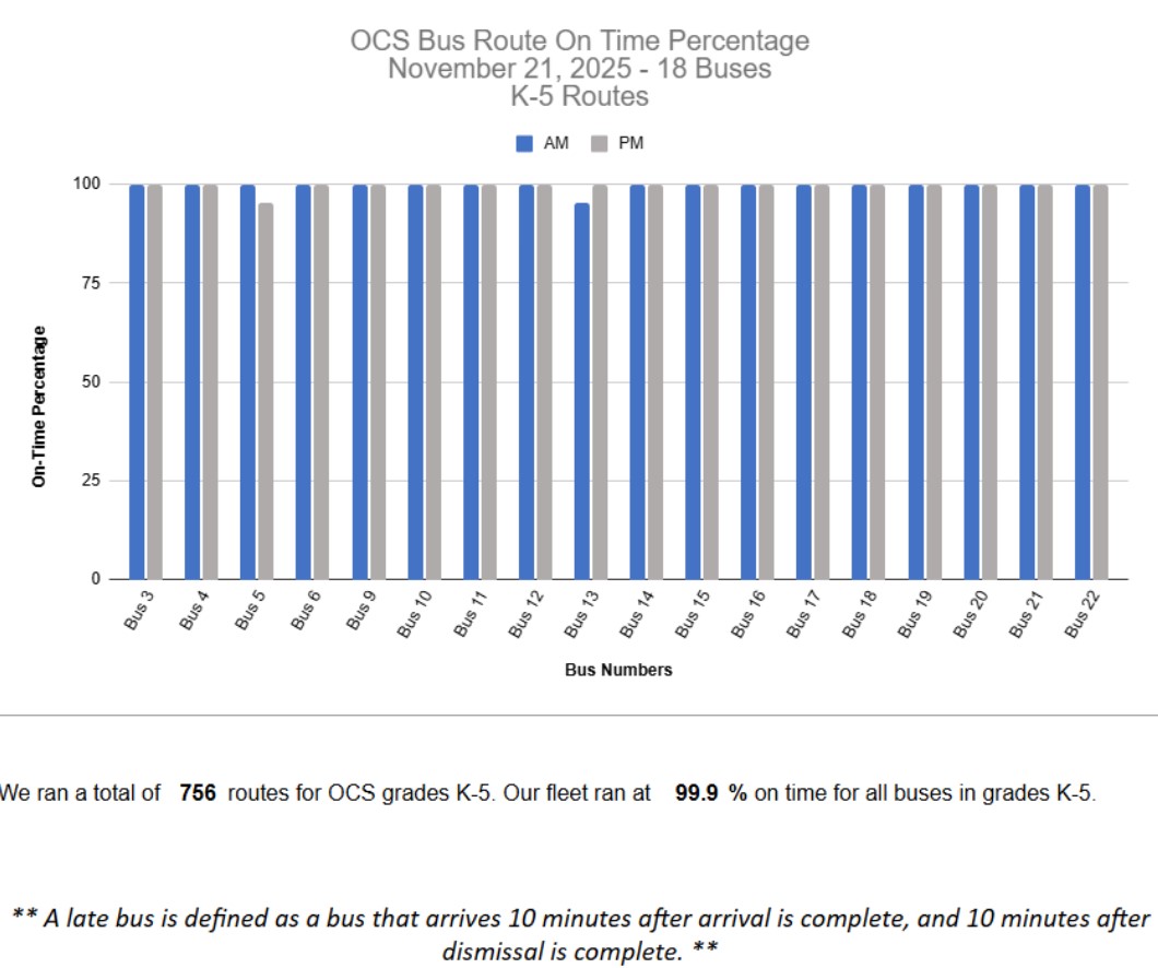Please do not change/modify your child(ren)’s transportation method or bus route without contacting the OCS Transportation Department in advance. All transportation requests must be made 72 hours before a change is made so the Transportation department can ensure the safety and well-being of all students and can locate them at all times.