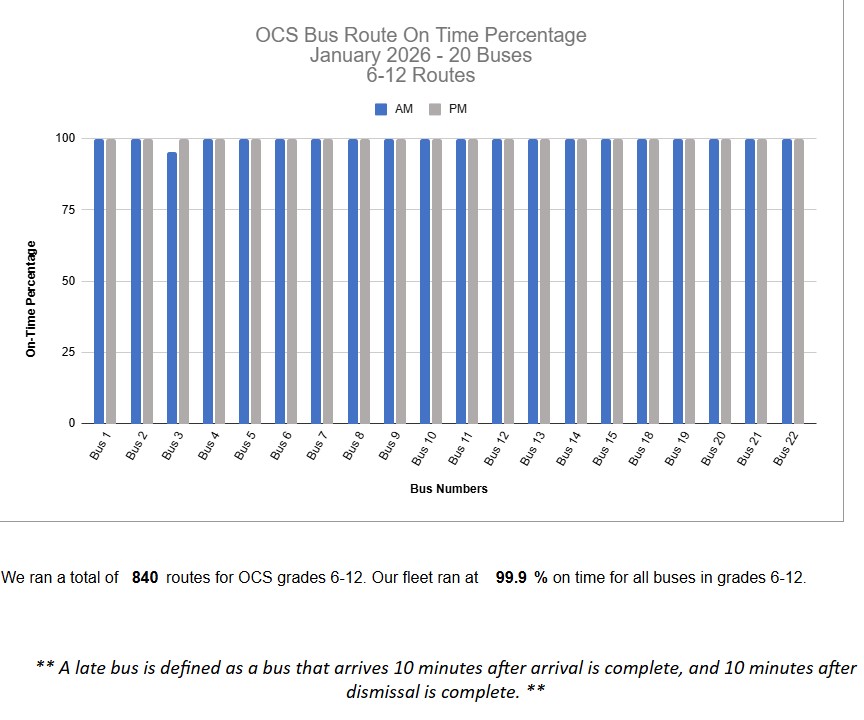 Please do not change/modify your child(ren)’s transportation method or bus route without contacting the OCS Transportation Department in advance. All transportation requests must be made 72 hours before a change is made so the Transportation department can ensure the safety and well-being of all students and can locate them at all times.